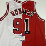Autographed/Signed Dennis Rodman Chicago Split Basketball Jersey Beckett BAS COA
