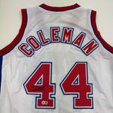 Autographed/Signed Derrick Coleman New Jersey NJ White Basketball Jersey Beckett BAS COA