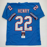 Autographed/Signed Derrick Henry Tennessee Retro Light Blue Football Jersey JSA COA