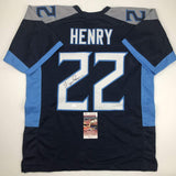 Autographed/Signed Derrick Henry Tennessee Titans Dark Blue Football Jersey JSA COA