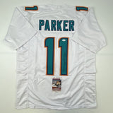 Autographed/Signed Devante Parker Miami White Football Jersey JSA COA