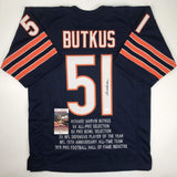 Autographed/Signed Dick Butkus Chicago Blue Stat Football Jersey JSA COA