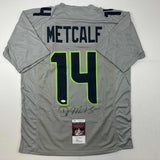 Autographed/Signed DK D.K. Metcalf Seattle Grey Football Jersey JSA COA