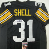 Autographed/Signed Donnie Shell Pittsburgh Black Football Jersey JSA COA
