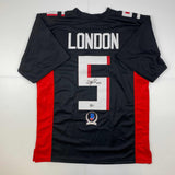 Autographed/Signed Drake London Atlanta Black Football Jersey Beckett BAS COA