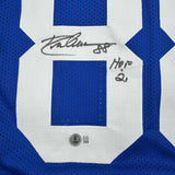 Autographed/Signed Drew Pearson HOF 21 Dallas Blue Football Jersey Beckett BAS COA