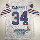 Autographed/Signed Earl Campbell HOF 91 Houston White Stat Football Jersey JSA COA