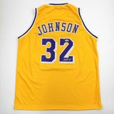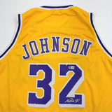 Autographed/Signed Earvin Magic Johnson Los Angeles LA Yellow Basketball Jersey Beckett BAS COA