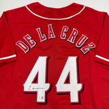 Autographed/Signed Elly De La Cruz Cincinnati Red Baseball Jersey Beckett BAS COA