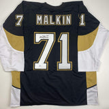 Autographed/Signed Evgeni Malkin Pittsburgh Black Hockey Jersey Beckett BAS COA