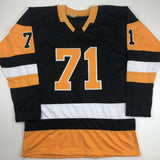 Autographed/Signed Evgeni Malkin Pittsburgh Black Hockey Jersey JSA COA