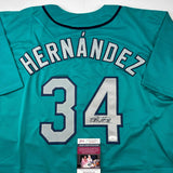 Autographed/Signed Felix Hernandez Seattle Teal Baseball Jersey JSA COA