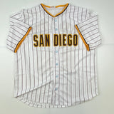 Autographed/Signed Fernando Tatis Jr. Slam Diego San Pinstripe Baseball Jersey JSA COA