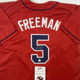 Autographed/Signed Freddie Freeman Atlanta Red Baseball Jersey Lojo Exclusive COA