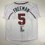Autographed/Signed Freddie Freeman Atlanta White Baseball Jersey JSA COA
