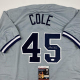 Autographed/Signed Gerrit Cole New York Grey Baseball Jersey JSA COA