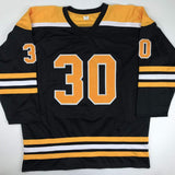 Autographed/Signed Gerry Cheevers HOF 85 Boston Black Hockey Jersey JSA COA