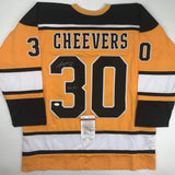 Autographed/Signed Gerry Cheevers HOF 85 Boston Yellow Hockey Jersey JSA COA
