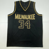 Autographed/Signed Giannis Antetokounmpo Milwaukee Blackout Basketball Jersey JSA COA