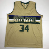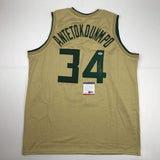 Autographed/Signed Giannis Antetokounmpo Milwaukee Tan Basketball Jersey PSA/DNA COA