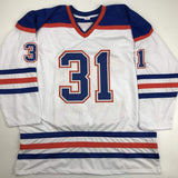Autographed/Signed Grant Fuhr Edmonton White Hockey Jersey JSA COA