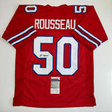 Autographed/Signed Greg Rousseau Buffalo Red Football Jersey JSA COA