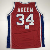Autographed/Signed Hakeem Akeem Olajuwon Houston Red College Basketball Jersey Beckett BAS COA