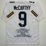 Autographed/Signed J.J. JJ McCarthy Michigan White College Stat Football Jersey Beckett BAS COA