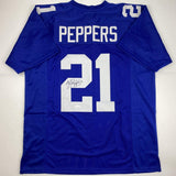 Autographed/Signed Jabrill Peppers New York Blue Football Jersey JSA COA