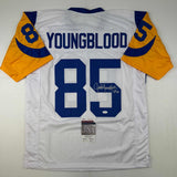 Autographed/Signed Jack Youngblood HOF 01 Los Angeles LA White Football Jersey JSA COA