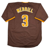 Autographed/Signed Jackson Merrill San Diego Brown Baseball Jersey Beckett BAS COA