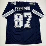 Autographed/Signed Jake Ferguson Dallas Blue Football Jersey Beckett BAS COA
