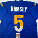 Autographed/Signed Jalen Ramsey Los Angeles LA Blue Football Jersey JSA COA