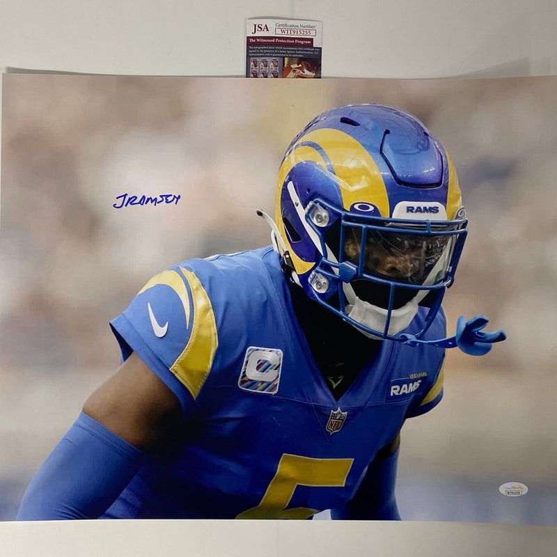 Autographed/Signed Jalen Ramsey Los Angeles LA Rams 16x20 Football Photo JSA COA #5