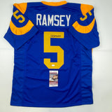 Autographed/Signed Jalen Ramsey Los Angeles LA Retro Blue Football Jersey JSA COA