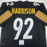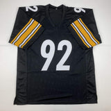 Autographed/Signed James Harrison Pittsburgh Black Football Jersey Beckett BAS COA