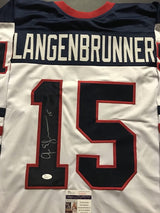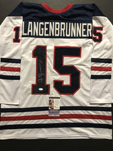 Autographed/Signed Jamie Langenbrunner Team USA United States White Hockey Jersey JSA COA
