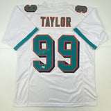 Autographed/Signed Jason Taylor Miami White Football Jersey Beckett BAS COA