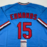 Autographed/Signed Jim Edmonds St. Louis Blue Baseball Jersey JSA COA