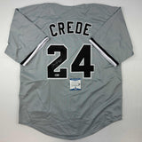 Autographed/Signed Joe Crede Chicago Grey Baseball Jersey Beckett BAS COA