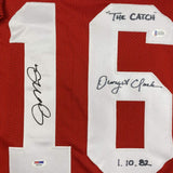 Autographed/Signed Joe Montana & Dwight Clark The Catch San Francisco Red Football Jersey PSA/DNA & Beckett BAS COA