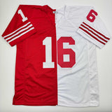 Autographed/Signed Joe Montana San Francisco Split Red/White Football Jersey JSA COA