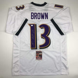 Autographed/Signed John Brown Baltimore White Football Jersey JSA COA