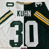 Autographed/Signed John Kuhn Green Bay Split Green/White Football Jersey JSA COA