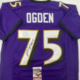 Autographed/Signed Jonathan Ogden HOF 13 Baltimore Purple Football Jersey JSA COA