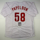 Autographed/Signed Jonathan Papelbon Philadelphia Pinstripe Baseball Jersey JSA COA