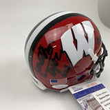 Autographed/Signed Jonathan Taylor Inscribed Go Badgers Wisconsin Red College Football Mini Helmet JSA COA