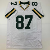 Autographed/Signed Jordy Nelson Green Bay White Stat Football Jersey Beckett BAS COA