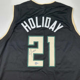 Autographed/Signed Jrue Holiday Milwaukee Black Basketball Jersey Beckett BAS COA