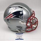 Autographed/Signed Julian Edelman New England Patriots Full Size FS F/S Replica Football Helmet Beckett BAS COA